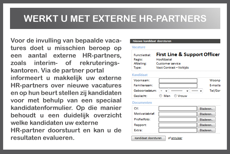 (ATS) e-hrm web-based rekruteringsplatform kandidatendatabase training & support HR Software management rapporten talentpool jobposting human capital